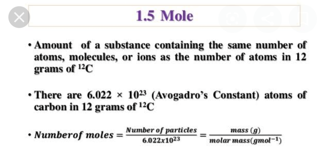 AMOUNT OF SUBSTANCE:-Amount of substance (also called chemical amount) is a quantity defined by standards to measures the size a group of individual elementary entities, such as atoms, molecules and electrons, along with other particles. . The SI unit of Amount of su stance is mole(mol)