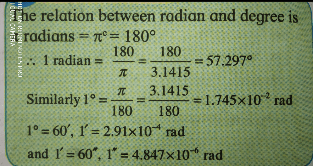 Plane angle:- The ratio of the length of an arc of a circle to the radius of the circle is the plane angle of that circle. d theta =ds/r is the angle subtended by the arc at the centre of the circle. It is measure in radiant (rad).An angle theta in radian is denoted by  0c